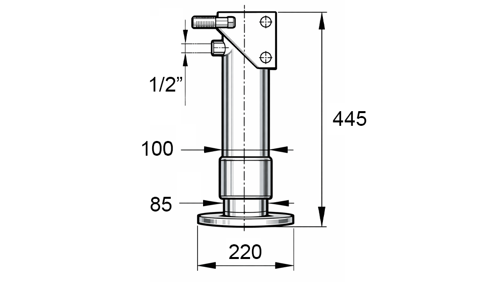 SCHWENKBAR DOPPELTWIRKENDER HYDRAULISCHER STÜTZBEIN (Φ100x445 mm) - HUB 250 mm - 6.000 kg