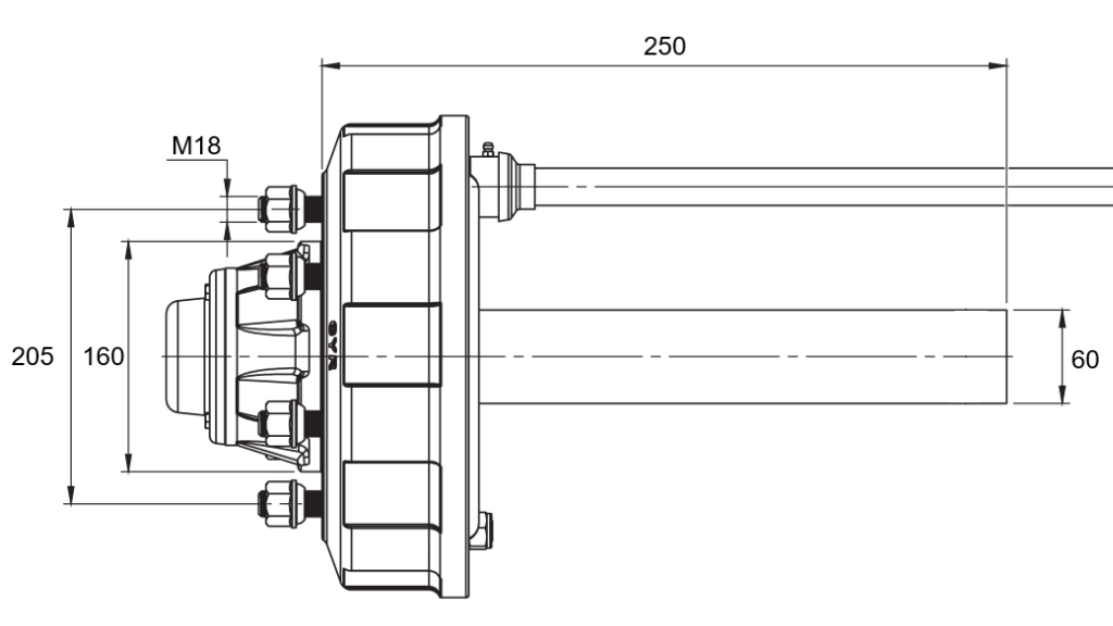 Napínací náprava je určena pro použití u různých typů přívěsů s brzdovým systémem. Délka napínací nápravy je 250 mm a nosnost až 2700 kg.