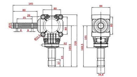 CAJA DE ENGRANAJES ANGULAR L-150J 1:1 (12HP-9KW)