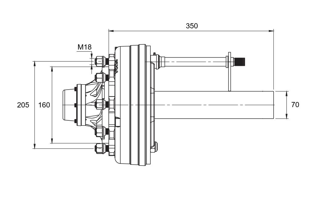 PUOLIAKSELI JARRUILLA - 3600 kg (6 RUUVIA) - 250 mm