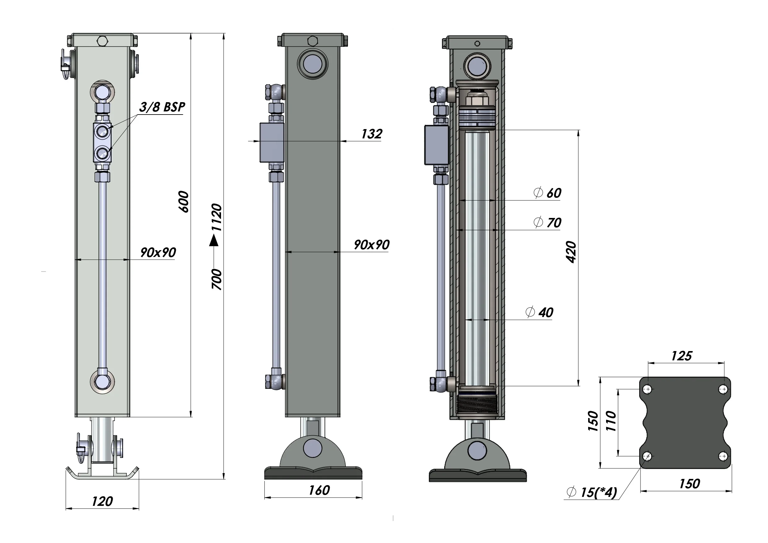 KETTŐS MŰKÖDÉSŰ HIDRAULIKUS TÁMASZTÓLÁB (90x90x700 mm) - LÖKET 420 mm - 2.500 kg